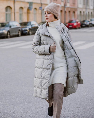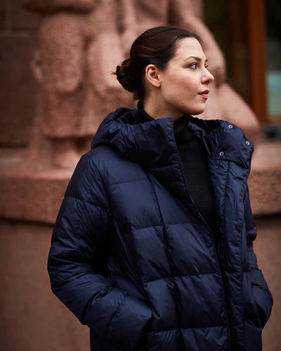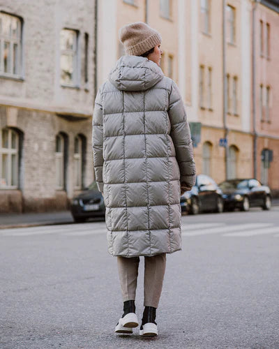 Ruututikattu Essi-kevytuntuvatakki on saanut pehmeän ilmeensä rakastetusta Kulkuri-torkkupeitosta. Se on kevyt, mutta suloisen lämmin hupullinen kevytuntuvatakki, jonka vetoketjun alla on leveä suojaava tuulilista. Suoralinjaisessa ja polvipituisessa takissa on mukavan väljä mitoitus. Voit valita yhden koon normaalisti käyttämääsi pienemmän koon, etenkin jos mietit kahden koon välillä tai haluat takistasi istuvamman. Takin täyte on 100-prosenttista, vastuullisesti tuotettua ja tutkitusti puhdasta untuvaa. Tähän takkiin sinun on ihana kääriytyä varhaisesta keväästä loppusyksyyn tai jopa leutoon talveen saakka.