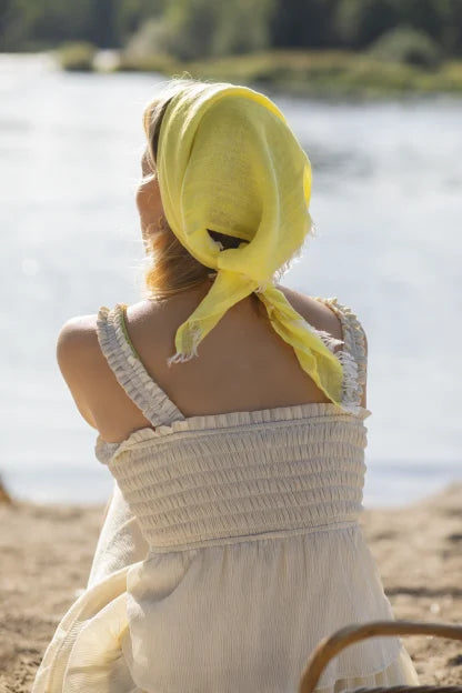 Hali linen scarf, 70 x 70cm + fringe, square shape.