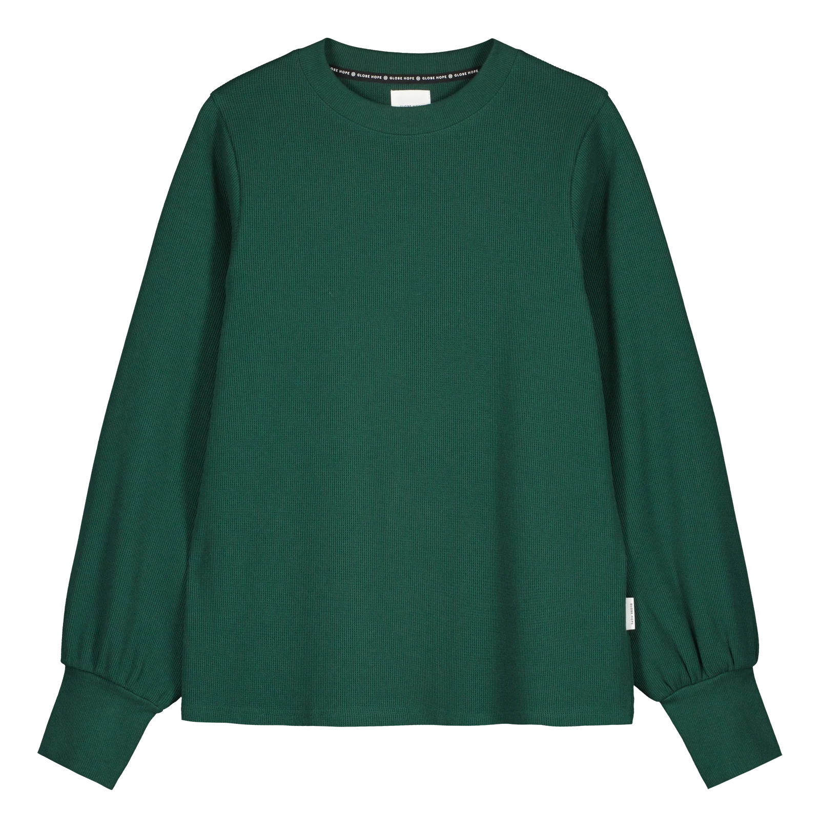 Syvä hunter green -metsänvihreä sävy on tyylikäs ja monipuolinen – se toimii yhtä hyvin rentojen farkkujen kuin siistimpien housujen kanssa. Waffle-kangas tuo pintaan kaunista tekstuuria ja tekee paidasta miellyttävän tuntuisen päällä.
