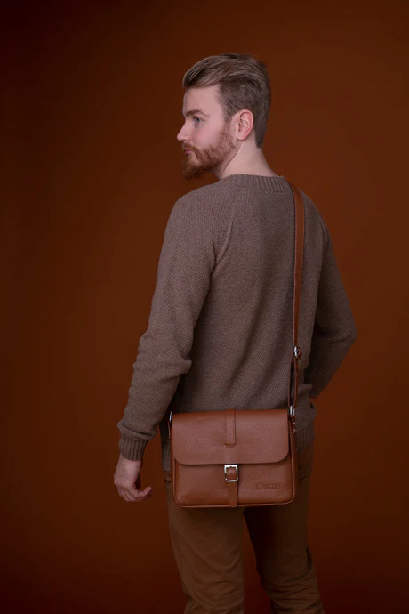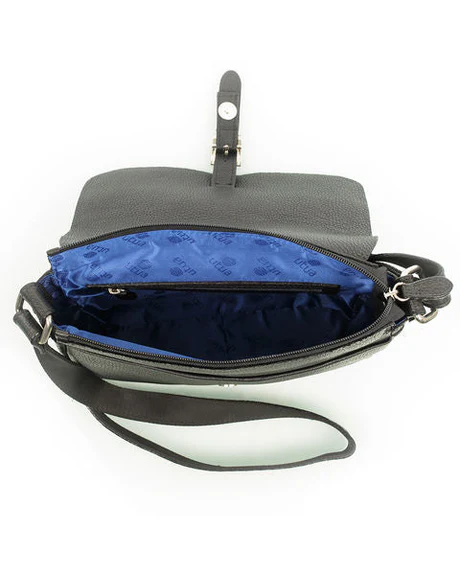 Sanoma on klassinen olkalaukku 70-luvun henkeen. Se soveltuu kenen tahansa mukaan ja matkaan –miehille ja naisille! Kiiltävä solki kiinnitetään magneettinepparilla. Pitkän olkahihnan saat säädettyä portaattomasti.